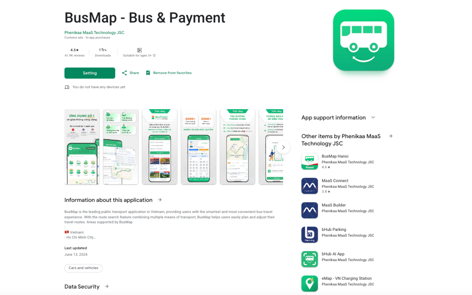 BusMap is a smart traffic technology product of Phenikaa MaaS, founded by Le Yen Thanh and a group of friends who aim to bring a solution that can solve common difficulties and inconveniences when using public transport. Launched in 2013, besides the positive feedback, BusMap has also received numerous valuable contributions from users. With the spirit of listening, learning, and constantly innovating, BusMap has removed the disadvantages to make the application more and more complete. After many efforts of the team and the support from users, BusMap is increasingly trusted and accompanies millions of trips every day.