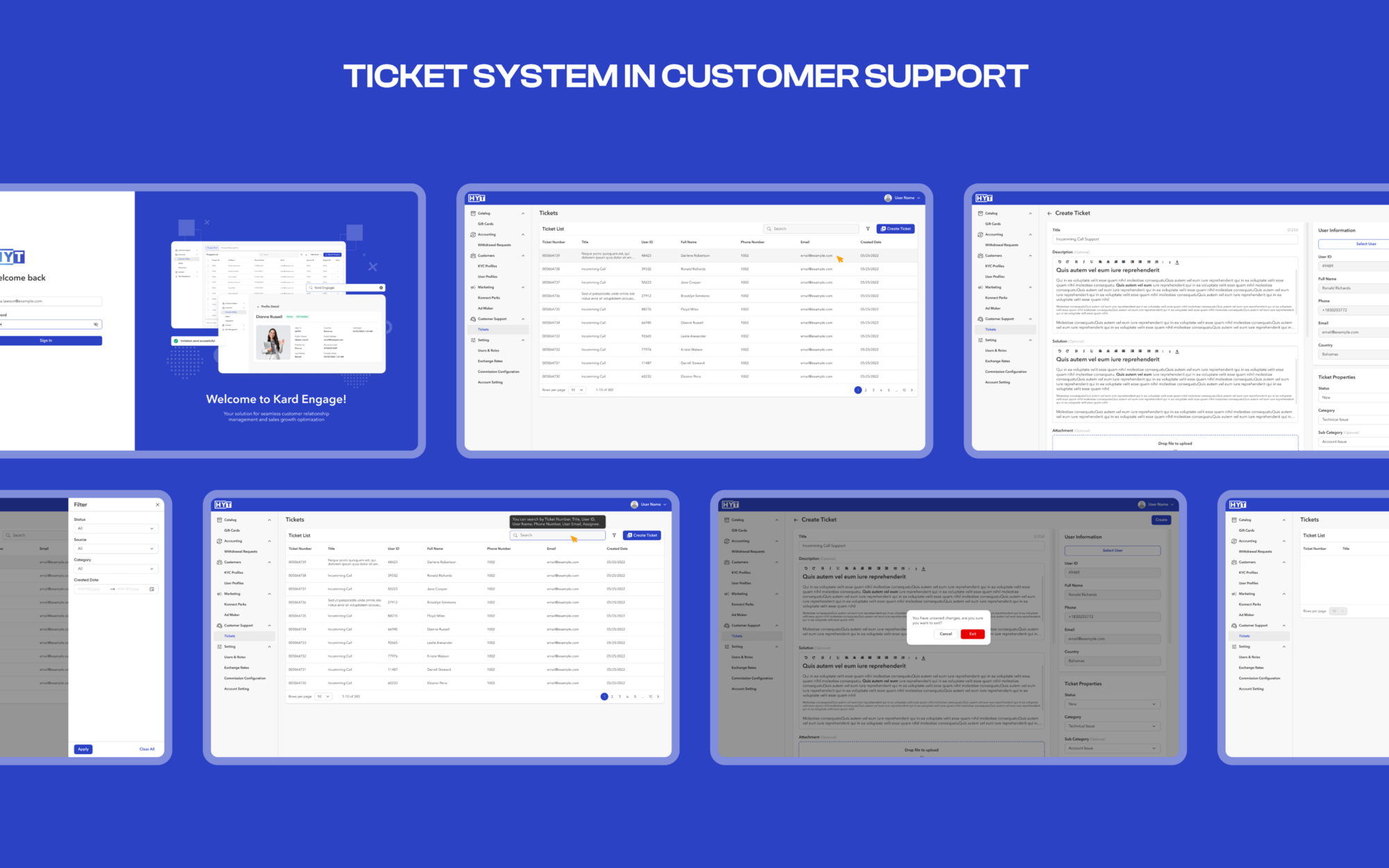 Alongside key decision-makers, I spearheaded the design for Kard Engage, a unified platform designed to streamline customer interactions and sales workflows. By prioritizing user needs, we crafted a powerful CRM and customer support system. This empowers support teams with centralized ticketing and task management, while equipping sales reps with a comprehensive lead pipeline. Kard Engage simplifies communication, boosts efficiency, and ultimately drives customer satisfaction and sales growth.